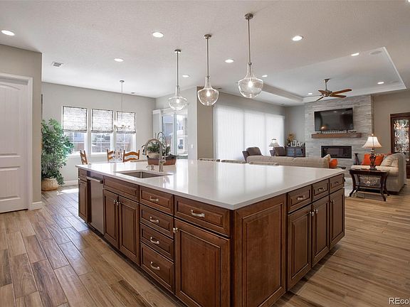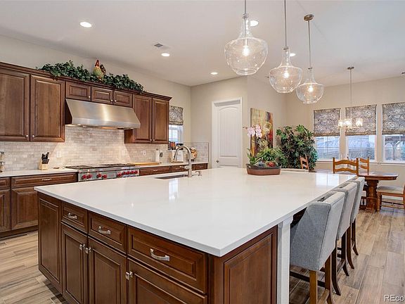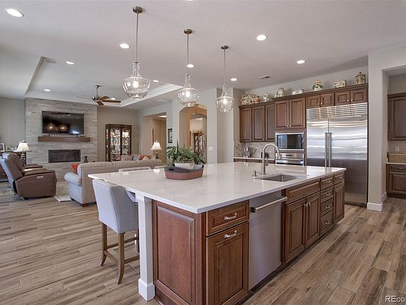 Incredible price for this stunning ranch-style home that is absolutely loaded with high-end upgrades and features an outdoor sanctuary of a yard! The sellers spared no expense when designing this house with the highest level of cabinetry, counters, flooring, tile work, fixtures and more and then added nearly $150k in additional upgrades and landscaping! The professional kitchen is an absolute dream, featuring an expansive center island with seating, SubZero refrigerator, Wolf 6-burner gas range & hood, double ovens, gleaming quartz counters, tasteful tile backsplash, a spacious pantry and an abundance of storage! The luxurious spa-like primary bathroom is phenomenal! You will delight in the multi-head/multi-jet shower, free standing tub, beautiful fixtures, intricate tile work and the lavish white marble takes you away! Some of the many sensational features of this home include a three-panel accordion glass door off the family room, spacious finished basement with wet bar that includes a full fridge and dishwasher, an incredible hot tub with automatic Covana Cover, Hunter Douglas window treatments (some automatic), a salt-free water softening system and so much more! Outdoor living doesn't get any better with the covered deck, a custom-built wood-burning outdoor fireplace, the beautiful custom stamped concrete patio, lined with raised irrigated flower beds, a large timber pergola, private hot-tub and a covered front patio, all on a 1/3 acre lot with amazing views! Soak in the twinkling lights of Castle Rock and the warmth from the fireplace on summer nights, grill out on the covered patio or just relax and unwind in the covered private spa! Careful planning even went into the storage shed that is built with a concrete access ramp and has electric! The open floor plan is ideal and features 3 bedrooms on the main floor, 2 more in the basement and with nearly 6000 square feet, there is room to roam! This home is immaculate!