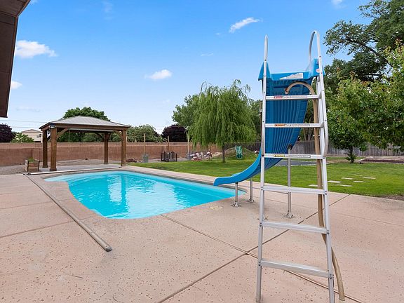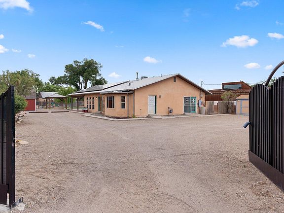 Wonderful Adobe estate located on a gated .51 acre property in the Heart of Old Town/Downtown area. Home features 2,315sf with 3 bedrooms, 2 bathrooms and a private pool. Huge living space with concrete floors and a beautiful tongue and groove wood beamed ceiling. Kitchen with ample cabinet space, concrete countertops, stainless steel gas range, range hood, fridge, dishwasher and high top bar with seating space. Separate formal dining space. Owner's suite with multiple closets and a private bath. Bath hosts a large jetted tub and walk-in shower. Two additional guest rooms and bath. Outside enjoy the large backyard perfect for entertaining with an inground pool, a pergola, covered patio, inground trampoline, two storage sheds & an additional shed w/ electricity could make a great workshop!