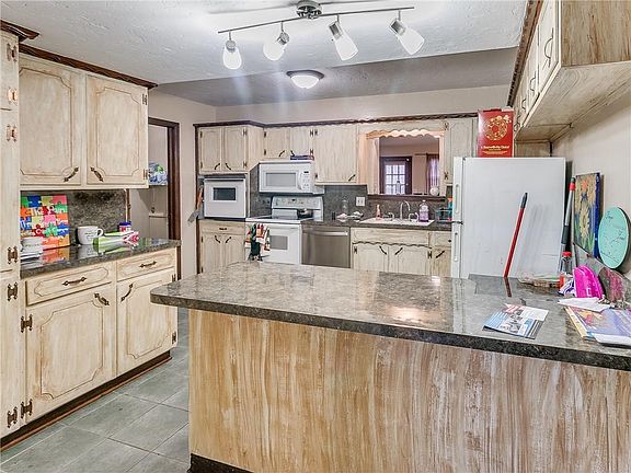 Decorate for the Holiday Season in your new Home before the season is over. Nice large home in well-established area. 4 large bedrooms, spacious den w/Fireplace. Red brick/white trim. Siding on exterior trim areas makes for low maintenance. Real good buy for the size of the property....Lots of updates, versatile floor plan, entry room could be formal living or study. Really nice kitchen with lots of storage. Master suite is large with completely remodeled master bath with jetted tub. Upstairs offers 3 bedrooms and a full bath - don't miss out on this one. Close to Tinker AFB. Great sized backyard, fully fenced and no neighbors behind the home.