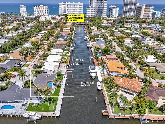 A One-of-a-Kind Waterfront Masterpiece | 100 Ft of Deep Water Dock | No Expense Spared. Villa Azul Vacation Home is a one-of-a-kind luxury retreat in Fort Lauderdale's Bermuda Riviera, offering dockage w/ no fixed bridges and stunning Intracoastal views. Just a 5-minute walk to the beach, open-concept living, coastal interiors, and a private backyard oasis w/ a resort-style heated pool. No expense was spared in creating this elegant waterfront escape. Perfectly located walking distance to restaurants, shops, & local treasures, Villa Azul offers the ultimate South Florida experience for discerning travelers & boating enthusiasts alike. This is a Vacation Rental & pricing is for 6+ months off season. If you are looking for shorter term please contact us for pricing for weeks/months desired. PLEASE CALL / TEXT MANAGEMENT COMPANY LUXURY VACATION STAYS, LLC FOR INFO