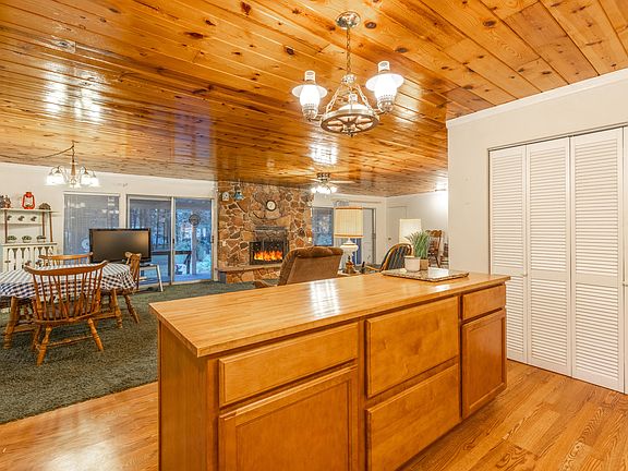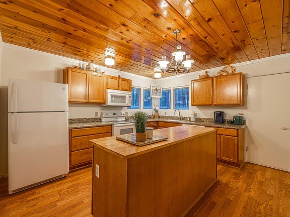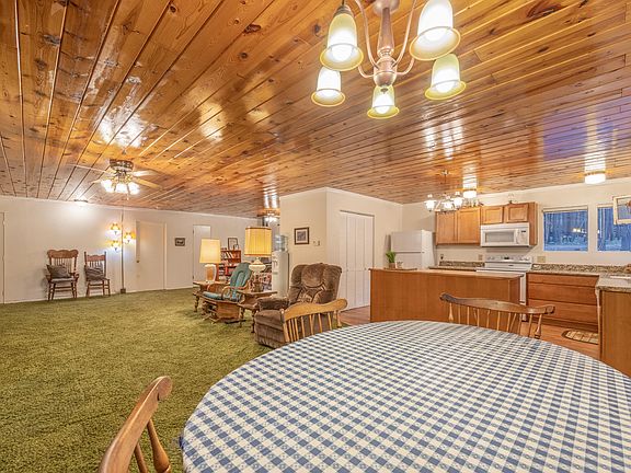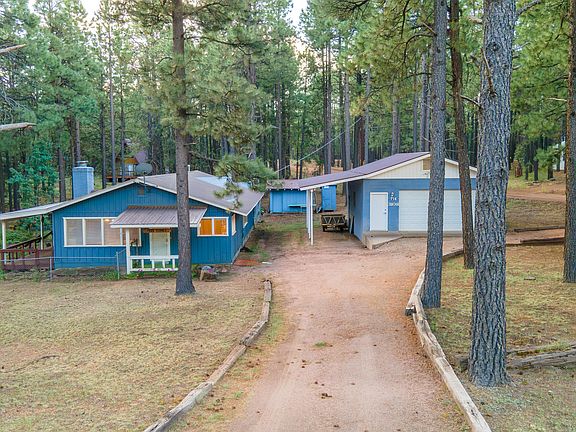 Welcome to this charming mountain cottage located at 3108 Old Rim Road! This delightful property is now available for sale, offering a cozy and inviting atmosphere that will make you feel right at home. Featuring 2 bedrooms and 2 bathrooms, this lovely house provides ample space for comfortable living. The updated kitchen boasts beautiful cabinets and stunning granite countertops, creating a stylish and functional cooking environment. All appliances are included, ensuring convenience from day one. Step into the great room and experience the warmth of the flagstone fireplace and wood burning stove, perfect for those chilly winter nights. The tongue and groove ceilings add a touch of rustic charm, blending seamlessly with the natural surroundings. Outside, you'll find a detached garage and a fenced yard with a double gate, providing plenty of storage space and security for your belongings. The large detached shed/workshop has electric & a concrete slab foundation to facilitate a nice workshop or even more room for your outdoor equipment. The level lot is adorned with majestic ponderosa pines, fur trees, as well as an array of bulb flowering plants and ferns that create a truly picturesque setting. Enjoy the fresh mountain air from the back covered deck or take advantage of the over-height carport space and circular driveway for convenient parking options. Additional features include a washer and dryer, an updated water heater, and an owned propane tank. Located in a serene neighborhood surrounded by nature's beauty, this mountain cottage is an ideal retreat for those seeking relief from the valley heat. Don't miss out on this incredible opportunity to own your cozy sanctuary. Come see to start imagining your life in this picturesque mountain getaway!