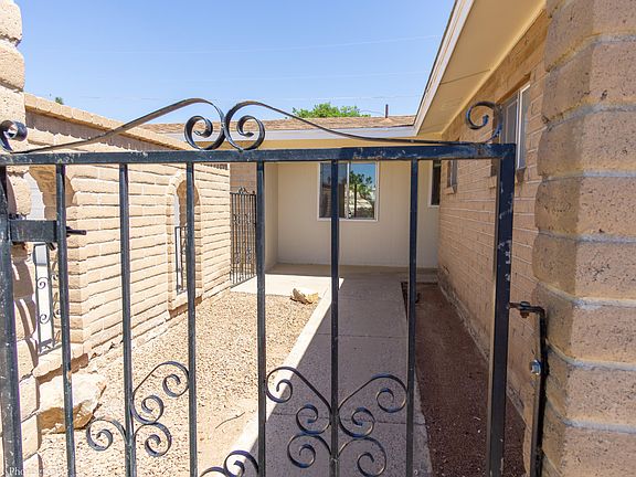 This home located at 3108 Risner Street, Las Cruces NM 88011 has 4 bedrooms, 1 - 3/4 bathrooms and 2 car oversized garage. The home is a move in ready home with tile floor throughout. The kitchen is complete with refrigerator, electric range, dishwasher, eating area, and tile floor. Living room has a wood burning fire place, new sliding door and fan. All bedrooms have fans. The washer and dryer are included in the utility room. The front outside has a nice courtyard with wrought iron gates. The back yard and side have a rock wall. There is plenty of space for RV parking on side of home. The home is close to schools, shopping and medical faculties. This home comes with a 1 year America's Preferred Home Warranty a value of $425. Don't wait because this home will not last. Call the listing agent today!