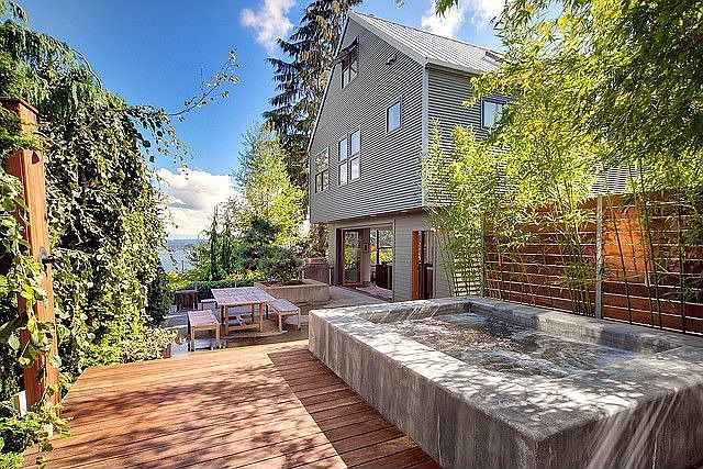 Surprising urban oasis with views of the lake, Bellevue skyline & slice of Rainier from the master bath. Designed by Philip Christofides in 2007, with fabulous open floorplan, concrete counters, ebony floors & tall ceilings. NanaWall makes entertaining a dream! Spectacular hardscape & landscape with mature gardens & very cool concrete spa. HW radiant heat (Runtal), chef's kitchen with top of the line appliances including blt-in coffee maker, concrete countertops & fully wired for sound! SLEEK!