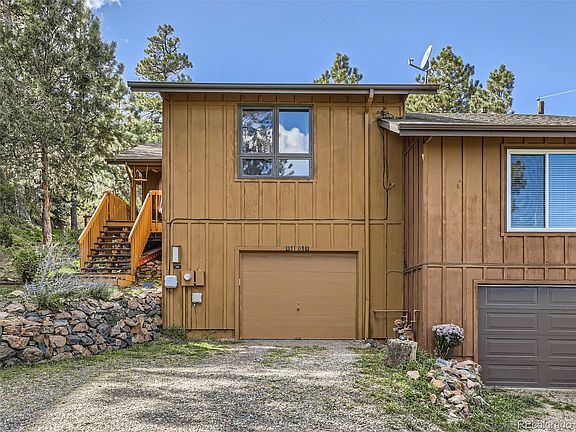 Very Charming 2 Bedroom, 1 Bath Mountain Home nestled in the pines and located in the sought after neighborhood of El Pinal. Updated and Upgraded! The welcoming Front Porch opens to the Main Floor that features beautiful Hardwood Floors, Remodeled Kitchen with Hickory Cabinets that include Pull-Outs, Quality Stainless Steel Appliances, 5 Burner Gas Range and more. Vaulted Ceilings and plenty of Dual Pane Casement Windows fill this home with Natural Light and pretty views. Nice Living Area and abundant Lighting. Two Bright Bedrooms and Remodeled Full Bath. Downstairs is the over-sized finished One Car Garage and Laundry Room with Slop Sink. A great lot with Garden Areas, Fenced inner Yard, Flagstone Patio and Fire Pit. Don’t miss this opportunity to own in Evergreen at a great price.