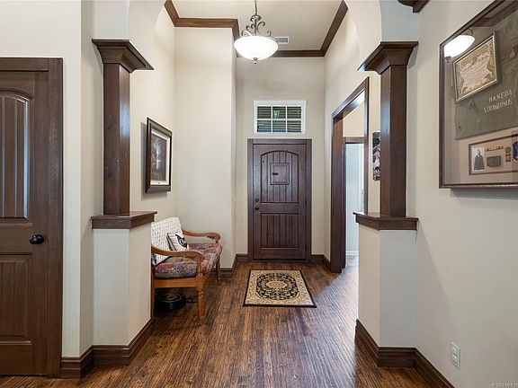 Beautiful one level home with 3 bedrooms + Study. Fabulous architectural details throughout. Open floor plan with gorgeous hand scraped hardwoods, vaulted/beamed ceilings, built-ins & stone FP. Granite kitchen with gas cooktop, wine frig & walk in pantry. Dining area opens to covered Patio. Master suite has spa bath with Tub, Separate shower and a huge walk-in closet. Laundry has drop zone & built-ins. 3 Car with Epoxy flooring. Private tiered back yard with water feature. Neighborhood Pool and Pavilion.