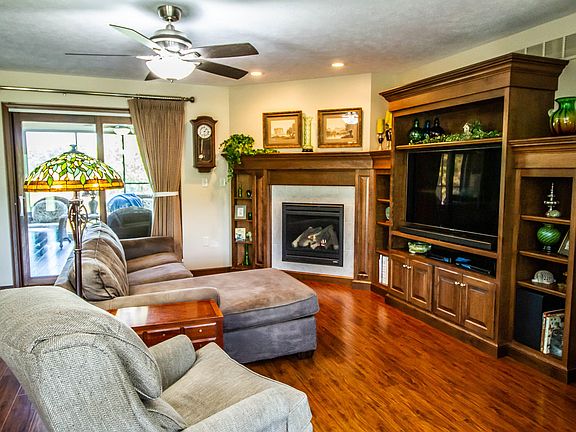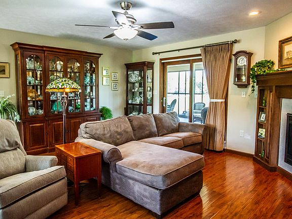 Stunning views from this newer built 3 bed/2 full bath brick ranch home w/ a 26x14 sun porch & an additional garage, situated on 6.53 acres! A new concrete drive leads to the private property at the top of the hill. Built in 2013, the home is tastefully finished and ready for you to move in! Open layout with a split bedroom floorplan. Cozy up to the fireplace in the winter & spend the summer relaxing on the sun porch! Impressive kitchen w/ stainless steel appliances, ceiling height cabinets w/ soft close drawers/doors, & plentiful counter/storage space. Pella windows, porcelain tile, solid core doors, & recessed lighting. The main bedroom features an en suite bathroom & walk-in closet. The land is zoned agricultural. 2-car attached & heated garage w/ walk-up attic. Detached garage is fully insulated. Fall in love with this home, call today to schedule a private tour!