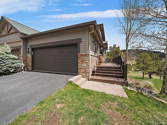 The Lodges is a unique area in Evergreen centrally located with great access to the mountains and Denver. In addition, you can walk to shopping and dining in Bergen Park and to the local schools and trails. If you like main floor living, you’ll enjoy this floor plan with a bright and sunny great room and dining area and a kitchen with an eat-in nook. This level also includes an updated primary bedroom with cathedral ceilings and a luxury bathroom with custom cabinetry, new flooring, quartz counters and an open concept spacious closet. Both the great room and primary bedroom walk out to a deck with maintenance free decking, nice views and beautiful sunshine. The laundry room/mudroom is conveniently located off the garage with easy access to the kitchen. The upper level has a large bedroom with 2 closets and access to a shared full bath. Also on this level is a bonus room which could be used as an office, workout room, playroom or nonconforming bedroom. The operable skylight in the bonus room gives this room plenty of natural light. The lower walk out level family room has ample room for relaxing and entertaining. There is also a full bath and a private bedroom on this level. You’ll appreciate the central air conditioning system in the summer and the HOA plowed driveway in the winter. The Lodges is a perfect area that is conducive to full time or part time living.