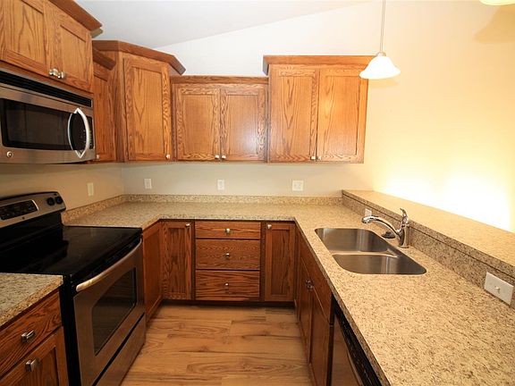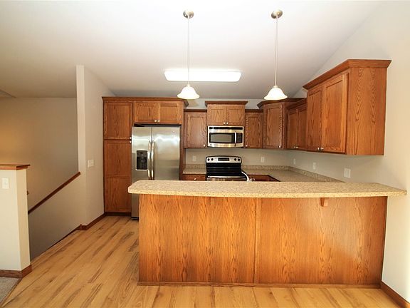 Move-In Ready!! This spacious split-foyer twin home features 4 bedrooms, 2 baths, & double attached garage! Vaulted ceilings and open layout from the kitchen/dining to living room with a patio door to your deck with stairs! You will be impressed with the kitchen featuring staggered height cabinetry, stainless steel appliances, an under mount sink, pantry with roll-outs and a snack bar--WOW! The main floor boasts 2 bedrooms and a Hollywood bath. The lower daylight basement is fully finished with a large family room, 2 bedrooms, full bath & large laundry /mechanical room with plenty of storage (washer & dryer included)!! The garage features an 8' insulated garage door, service door, lights, opener and floor drain! The yard is finished with sprinklers! Located in NE Minot's Stonebridge Farms, a planned community with parks, picnic areas & walking paths! Call your agent today to schedule a showing!