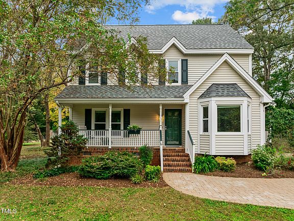 BEAUTIFUL HOME nestled on a huge flat .87 acre cul-de-sac lot! Owners have meticulously maintained the home inside and out. Hardwoods throughout main floor; New carpet on stairs and 2nd floor; Kitchen cabinets just painted with a neutral blue/grey paint color and new hardware; Other areas just painted including fresh white trim throughout; All 3 bathrooms tastefully updated-2023; New roof-2021; New windows downstairs-2014; New windows upstairs-2021; New steel exterior doors -2021; Eating area off kitchen plus a separate dining room; 2 large bay windows; 528 ft2 of unfinished walk-up space for storage or expansion; Covered front porch and side entry porch; Back patio; Beautifully landscaped with lots of flower beds & 3 raised garden beds in the backyard plus a shed to store your tools. The yard is great for bird watching too! Setting is quiet, peaceful and private yet close to major roads and conveniences. What a great place to call ''HOME''!