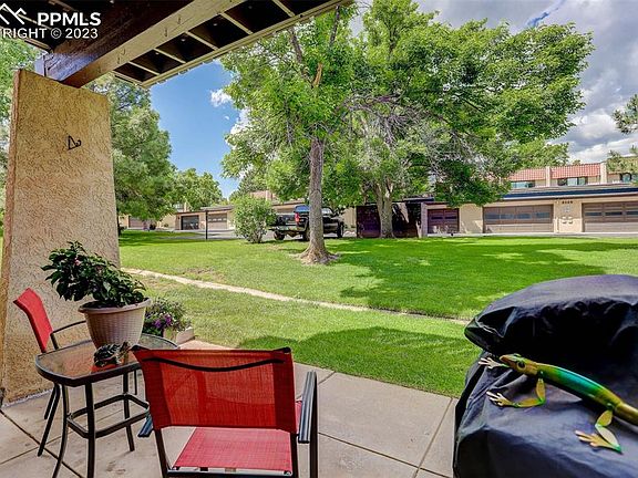 Welcome to this exquisite first-floor end unit condo in the desirable Broadmoor community, just across from the prestigious Cheyenne Mountain Resort/Golf Club. This 2-bed, 2-bath home offers a comfortable living space with charm and convenience. Step inside and be greeted by a spacious living room with a cozy gas fireplace and a wet bar, perfect for entertaining or enjoying relaxing evenings. The formal dining room provides an elegant setting for meals and gatherings. The well-appointed kitchen features essential appliances and ample cabinet space for culinary adventures. The primary bedroom offers generous space, two closets, and a 5-piece bathroom with a linen closet. The secondary bedroom is also spacious and has easy access to a second full bathroom. Central air conditioning ensures year-round comfort, and a washer and dryer are included for added convenience. Outside, a detached 2-car garage w/ workbench is steps away from your door. In addition, you have a designated area for RV parking if needed. Don't miss out on this meticulously maintained property. Schedule a showing today and discover the perfect blend of comfort, style, and location at Villa Pourtales. **Check out the incentives**
