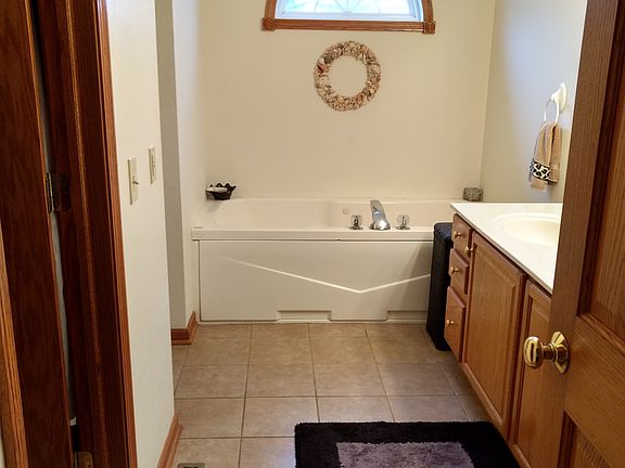A beautiful, contemporary, single family home with fenced-in back yard and large side yard. First floor master with 6 ft. jetted tub in the bathroom. Central air throughout. Cathedral ceilings in foyer and great room. Fully applianced kitchen with custom made oak cabinets and walk-in pantry. New dishwasher and garbage disposal. Ceiling fans in all bedrooms. First floor laundry with sink. Breathtaking floor to ceiling stone fireplace. Raised deck with cement patio. Full basement with new hot water heater. Oversized 2 car garage. New carpeting in dining room. Great location close to schools, downtown area, and major highways. Actually has a countryside feel to it!! (Realtors welcome at 2% and leasing is not an option)