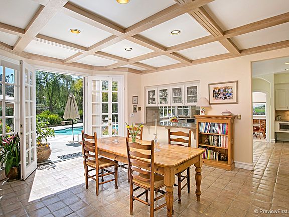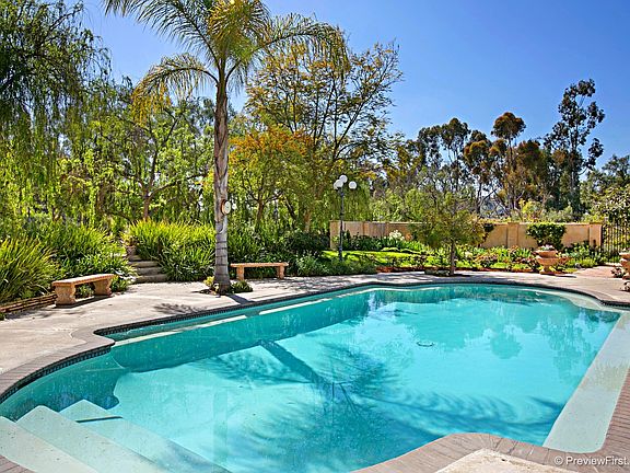 PARADISE FOUND! Welcome to Rancho Santa Fe?s best kept secret. Situated within the gates of South Pointe Farms, this 5 bed/5 bath residence on 2 + acres, is the epitome of European living. An impressive driveway, flanked by roses and lavender, leads to a circular entrance court.The large, airy hall with graceful curved stairway opens to a formal dining and living room, entirely paneled with a rare butternut walnut. The kitchen is fully equipped with new appliances, and is adjacent to a warm family room, and spacious breakfast area. Also located on the main floor is a paneled office, and a light filled, unique, circular room ideal for many uses..playroom, art studio, work out room, office. Upstairs is the large, romantic beamed master suite with french doors that invite views over the spectacular gardens and beyond. 3 other over sized bedrooms also enjoy countryside scenes. Above the detached 3 car garage is a very spacious apartment with wood floors, renovated bathroom, and ample storage. The southern exposure not only floods this home with sunlight, but encourages the absolute blast of color that pervades year round in one of the most beautiful gardens in Rancho Santa Fe. Planted, and meticulously tended by owners, it offers a vast array of flowers, shrubs, and trees providing a magical setting for this unique home. Water usage is very low, since the garden is on a drip system. Most rooms open on the terrace and private pool area, the perfect place for al fresco entertaining. This is a haven of peace and quiet, yet minutes to beaches, shopping, and freeways! Buyer and Buyer?s agent to verify all before close of escrow. CHANDELIER IN DINING ROOM DOES NOT CONVEY.