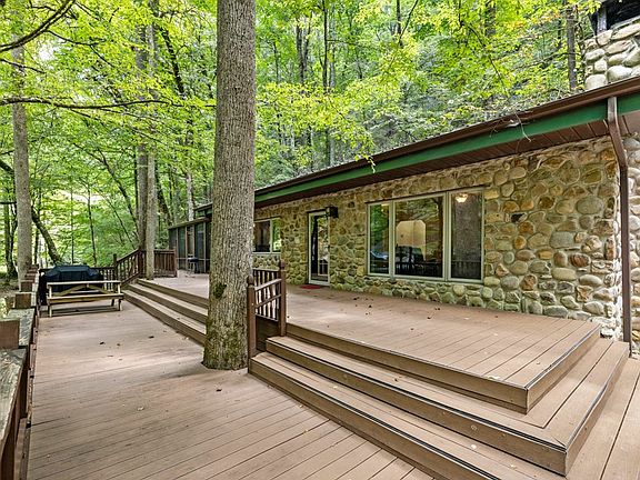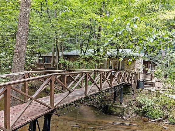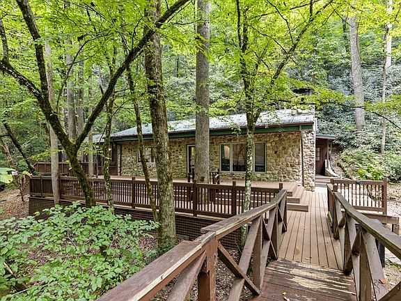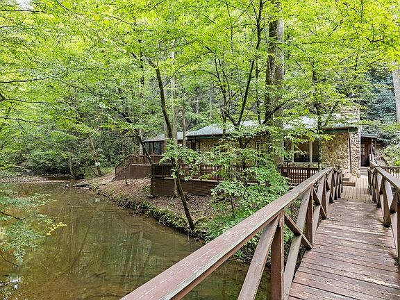 CREEKSIDE CABIN what a beautiful setting at this cabin starting when you first pull up. Nice and private with a creek right in the front of the cabin. Cross the bridge to go over the creek to get to the house and the peacefulness of the creek is so enjoyable. Stop and listen to the sounds of the creek on the bridge. Firepit area to the right of the house to sit out enjoy a fire and the creek. Large deck area with new trex boards for you to grill outside on the new gas grill. Also cut off valve for gas for grill and fireplace. When you come into the house they have nice hard wood floors. The sellers have updated the furniture in the living room and it has a gas fireplace. The fixtures throughout is a nice touch. The bedroom has nice wood furniture and while in your bed open the windows and you can hear the sound of the creek. In the bathroom there are granite countertops and hook up for a TV to watch while in the jacuzzi. Large tile shower and 2 separate toilets with doors for privacy. Tile floors in the bathroom and carpet in the bedroom. There is an owners closet for rentals, if you decide to put it on a rental program. Also walk out to the large screened in porch with a great view of the creek. Possibly turn this area into a game room plenty of room for so many things. Sellers had the property on a rental program until October 2021 and took it off the rental program. Until that point the gross rental amount was $50,000. Also lot next door if you are looking at the cabin to the left parcel # 103K A 008.00 is also included in this purchase. Call today to schedule your showing for this great house!!