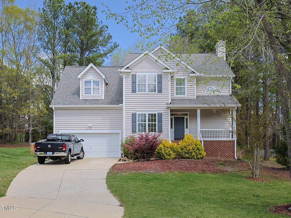 Welcome to your new home, nestled within a serene cul-de-sac in the heart of a vibrant neighborhood, perfectly positioned between Wake Forest and Raleigh! This home has been meticulously maintained and features fresh paint throughout and all new flooring, making it move-in ready for its new owners! Open floorplan, 9' ceilings on the main level, unbeatable backyard, storage shed, new gutters with leaf guards! Don't miss out on the opportunity to make this exceptional property your own!