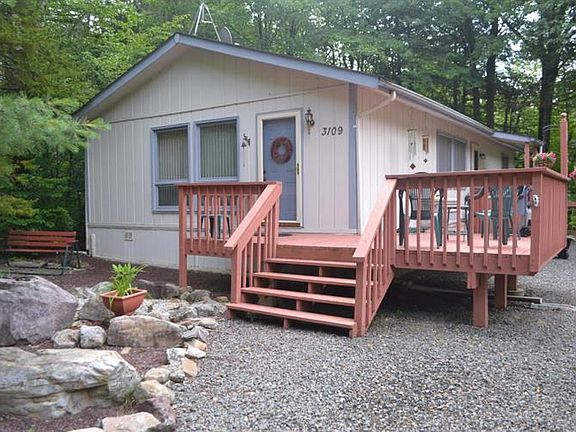 PRIDE OF OWNERSHIP is Evident in this well maintained 2 Bedroom, 2 Bath Chalet/Ranch situated in a Cul-de-sac in POCONO FARMS COUNTRY CLUB - Golf Course Community. A Perfect Get-away or Empty Nester Home that is minutes away from the Resort-like amenities of the Poconos as well as Mt. Airy Casino, Indoor & Outdoor Water Parks, Skiing, Shopping, Etc. Cozy up to the Propane Stove in the Living /Dining room.
