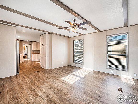 Welcome to one of the nicest all ages parks in Fort Collins! Just minutes to I-25 & Old Town Fort Collins, this air conditioned home features an open floorplan, a large kitchen with a lot of cabinet space, large primary suite with a walk in closet & elegant bathroom & 2 additional bedrooms. The kitchen features a stainless steel refrigerator, gas range, a large countertop area and a dining area. Outside there is a storage area and a large grassy backyard with plenty of trees for shade and entertaining.