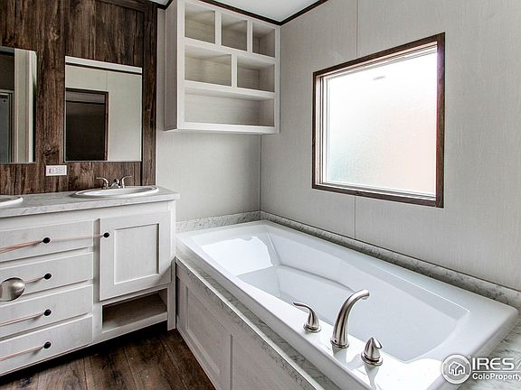 Villas Community is Ft Collins newest and nicest. Safe and Secure, this boutique haven is very private and secluded in a residential area. With full time onsite management, the community features new wide streets, beautiful landscaping and all new homes. The resident friendly ownership offers below market lot rent of $690 / month. Park allows for 2 small inside pets. Dogs must be under 25 pounds and be approved by management. The home is brand new, and features an open floor plan with 8 foot high ceilings, energy efficient windows, deluxe appliance package, washer / dryer connections, ceiling fans and Central AC. Purchase of home includes a full Factory Warranty. Carport may be added for $4,000. Park allows for residents to do custom landscaping with management approval of design and location. Raised garden beds, flowering shrubs, grass area for pet.