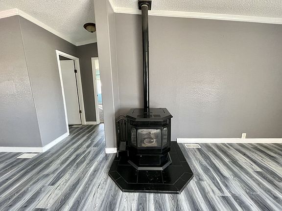 This beautiful home is ready for you! Metal roof is six years old. There is a circular driveway and is located on a corner lot just a hop, skip and a jump outside of Elko City Limits at the end of the pavement. Freshly painted inside and out. Pellet stove in the open living space. Split bedroom floorpan and all the bedrooms are very large. New flooring. Beautiful view of Elko. There is a covered front deck and the back has a large deck, as well. Both have been freshly painted. The kitchen has newer appliances and tiled countertops. Vaulted ceilings make this home feel so spacious. Don't let this one pass you by!