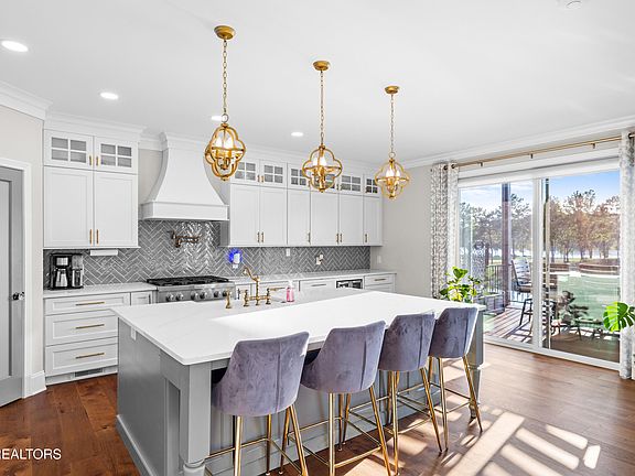 Stunning custom-built 6 bedroom, 4.5 bath Tennessee River front home located in a gated South Knoxville community just minutes from downtown Knoxville. Completed in 2020, this property offers luxury living with direct water access and a private boat slip. The home features three expansive back decks overlooking the river, a walkout basement with ample storage, and an elevator servicing all levels. The expansive primary suite includes a private balcony with river views and a massive walk-in closet. The main level boasts 9-foot ceilings, a dedicated office, and a spacious kitchen designed for entertaining. Additional highlights include a three-car garage, expansive living areas, and high-end finishes throughout. Community amenities include a clubhouse and in-ground pool. This exceptional property offers a rare opportunity to own a waterfront estate with convenience, privacy, and unparalleled views in Knoxville.