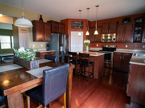 Fantastic family home.Almost 2600 sq ft 4 bed 2.5 bath.Highly desirable Preston Woods subdivision.9' foot main floor ceilings.Large formal living room or dining room.Hardwood floors in kitchen and breakfast room.Staggered cabinets with crown molding,center island,and stainless appliances. Loft/bonus space upstairs and 2nd floor laundry room.The large master suite has a huge walk in closet.Master bath has adult height vanity with double sink,separate tub and shower,and ceramic tile floors.3 other bedrooms and a full bath round out the 2nd floor. Bedrooms 2 and 3 are very large for secondary bedrooms.Look out basement with 2 large windows and a rough in bath. 18x14 cedar deck off the breakfast rooms leads down to the 30x20 patio. Patio features a granite bar top and built grill section. Stone sitting wall surrounds the stone fire pit. The outdoor space is made for entertaining and can easily accommodate 25 people and there is still tons of grass space for the kids