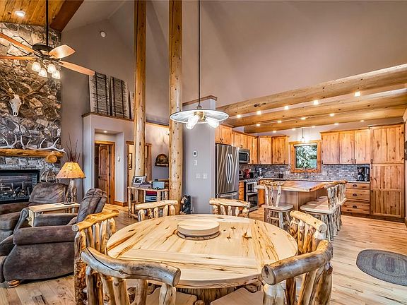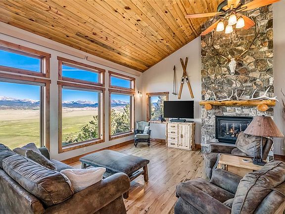 With breathtaking views from Quandary Peak in Breckenridge to Mt. Princeton in Buena Vista, this spectacular property is a true Colorado masterpiece. The exquisite, custom-built home boasts handcrafted log furnishings throughout and endless views from every window. Only 12 mi from Fairplay. Situated on a double lot that borders private fishing access on the S. Platte River, and surrounded by public lands teeming with wildlife, this stunning property is ready to be your mountain escape!
