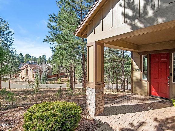 Don't miss the opportunity to see this lovely 3 BD / 2.5 BA townhome in the desirable Pinnacle Pines neighborhood. Every room and bedroom is larger than typical, so it is very livable to say the least. This home is located at the end of a cul-de-sac and backing community open space, with thick ponderosa pine trees. There are two covered decks with towering views of the ponderosa pine trees and even a bit of a San Francisco peaks view. This IS one of the best lots in the community, bar none. The open concept kitchen and great room make it easy to entertain. Upgraded appliances and finishes throughout the home, there is a lot of expensive detail. Very close to shopping, restaurants, NAU, Lake Mary, and trails literally out your back door. Generous 2-car garage with extra storage capacity.