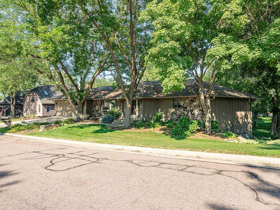 Where do I find one of those generational opportunities; I just did! Snuggled between O’Gorman and Minnehaha CC on a private street, it’s your chance to settle in like few other places. Ranch style with 5 bdrs, 4 baths, 4 gar stalls. Just shy of 4500 ft², every room has the space to let life happen. Check out 360 photos for more feel of the property. The LR/FR feats. a 15 ft dbl frplc with “CA Driftwood” stone. So many wndw you’ll feel outside has come in. Deck runs from DR to the prim bdrm, w/3 sets of Sldg glass drs. Formal DR w/inlaid oak floor & b/l hutch. Mult sets of book/display shelves. Kitchen is huge! SubZero frig/frzr, JennAir cook top, twin ovens, pantry, oak flrng. W face box wndw. Huge brick/Corian top island. Entertaining is a breeze. Prim bdrm large. Van. w/I clsts are separated by the tub and shower area (htd flr too!). Slider to the deck. MnFlr laundry is a dream. LL has 4 bdrms (3 w/clsts). Fiplc 2 is in the 2nd FR w/an aux kit next door. Sliders to the patio!