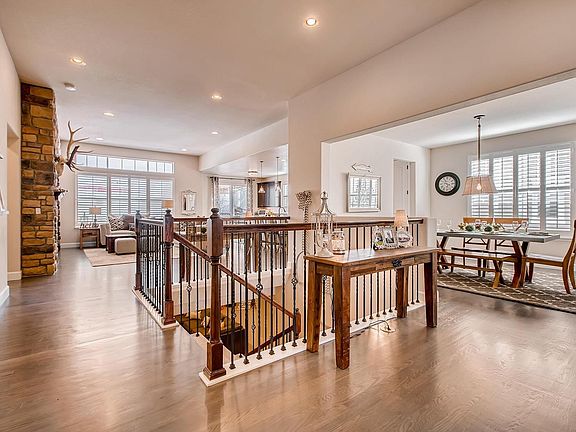 This Stunning Ranch Home located in The Meadows at Historic Castle Rock has everything you are looking for! A Gorgeously decorated beauty nestled among the rolling hills of the Ridgeline Open Space boasts a total of 4 bedrooms plus a study and is situated literally steps from the trail head. The gourmet kitchen features stainless-steel appliances including gas cook-top & seemingly endless counter space and is wide open to the family room with a grand fireplace and 12 ft ceilings! The newly refinished hardwood floors on the main-level & the easy to maintain xeriscape backyard provides a serene oasis to take in the surrounding nature of the adjacent green space! The master bedroom features an enormous master bathroom complete with dual walk-in closets. The 2nd bedroom on the main level has it's own dedicated full bathroom. You'll also love the reclaimed wood in the study! The finished basement features 2 large bedrooms, full bath, double vanity, media area & plenty of storage space!