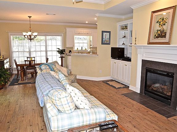 GATED COMMUNITY. You will love this Light & Bright Patio Home with 3 bedrooms and 2 full bathrooms. The living area boasts plenty of windows for natural light, a fireplace surrounded by built-in cabinets and shelves which opens to a spacious dining room with triple windows and the kitchen with a breakfast bar. There are ample cabinets and counter space, and a pantry in the kitchen with stove, vent hood and dishwasher included. The door from the kitchen leads to the covered porch area, patio and a private back yard. The master bedroom is large and the master bath has a walk-in closet, linen closet, double vanities and a whirlpool tub/shower combination. There are 2 other bedrooms with great closet space, a large laundry closet and additional storage closets. The hall bath is spacious and has double vanities. Recessed lighting and ceiling fans. The floors are tile, carpet and vinyl plank with a pine design. This property features a single garage, a landscaped lot and more. Call to preview today. Seller is related to Listing Agent.