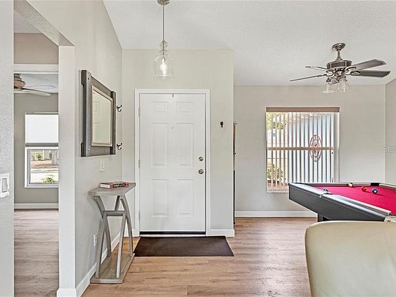 Beautifully updated home! This home has everything a buyer is looking for with top of the line upgrades. New wide plank vinyl flooring throughout the entire home creates an open and spacious feel as you walk from room to room. All bathrooms have been upgraded with custom vanities, tile and fixtures are also new and offer an updated and stylish look to this home. Kitchen is a show stopper with extra tall cabinets, under cabinet lighting, and upper glass cabinets that light as well. You will love the custom lighting, counters, fixtures, and every design element that was thoughtfully selected to make this kitchen both beautiful and functional. The master bedroom offers a walk-in closet. The owners have moved the washer and dryer inside for ease and air conditioning while doing the laundry, but it can be placed back in the garage if buyer requires more closet space. As you look around you will see upgrades from window treatments, to light fixtures, to fans, and all the paint both interior and exterior has been recently done. Newer AC, new Roof being installed March 2021. This along with all newer appliances and design upgrades you rarely find unless you are building a custom homencreates the perfect home for the new buyer to step right into with truly nothing to do. Screened lanai with additional open patio seating overlooks large backyard with a gorgeous lake view. Storage shed for gardening and storage needs is an extra bonus that make this home a great opportunity!