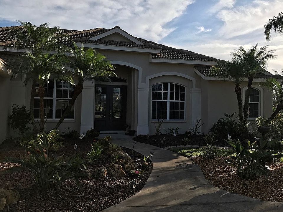 Too Close to your neighbors? If so this Tantalizing like new pool home situated on a pristine 1/2 acre could be yours! Entering through the foyer you are greeted by the dining room offering chandelier lighting, upgraded window treatment & blinds, and wood laminate flooring as well as the formal living room with a sliding, stacking glass door leading to the lanai, and ceramic tile flooring. Get Cooking in the gourmet kitchen featuring recessed lighting, solid wood cabinets, stainless steel appliances, granite counter tops, breakfast bar & nook, closet pantry, and tile flooring. Entertaining is a breeze in the spacious family room offering lanai access through sliding, stacking glass doors. The master suite boasts tray ceiling, lighted ceiling fan, garden shelving, lanai access through sliding glass doors, his-and-hers closets, carpet flooring and a private master bathroom with recessed lighting, walk-in shower, garden tub, his and hers sinks, vanity area, water closet, linen closet & tile flooring. This home also offers 2 guest bedrooms, 2 guest bathrooms, a den/office which can be converted to that 4th bedroom/nursery if needed, and bonus room with lanai access. The extended screened lanai features multiple covered sitting areas and a gorgeous pool with fountain. In addition to its premium location, this subdivision also offers amenities such as a large park with sports goals, a dog park and a playground. Hurry and Call today to see for yourself!