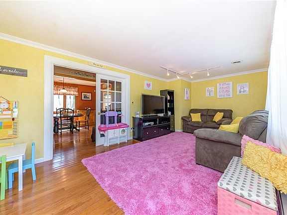 Situated on over an acre of land, this 4 BR 2 Bath Ranch is waiting for you! Enter to find gleaming HW floors, crown molding, track lighting & more! Spacious LR streams natural light through its lovely bay window. French doors give way to the DR where you can entertain dinner guests & enjoy savory meals. EIK offers newer appl. & a plethora of cabinetry. FR w/features you will love, beautiful skylight, built-in shelving, WB stove & gas FP. Master BR is sure to please w/WIC & ensuite bath. 3 more BRs, a dazzling full bath, & laundry rm complete the home. Fenced in yard w/refinished deck & 4 seasons gazebo, making entertaining outdoors all yr round effortless. Other features, whole house filtration system, water softener system, new siding, tree-lined drive for privacy, garage & sheds for storage, & security system (cameras, motion detectors, lights & alarm). Great location, close to major highways, parks, shopping, restaurants & schools. This one won't last!