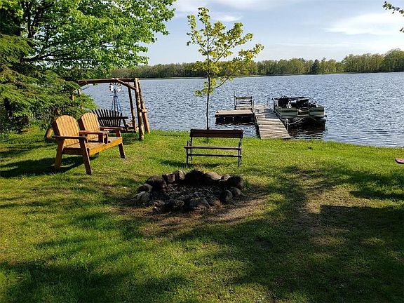 This cute 3 season 2 bedroom cabin has great views of Horseshoe Lake. With its flat elevation and sandy clean frontage makes it great for swimming for all to enjoy! Cabin comes furnished, includes Dock, swimming raft and riding lawn mower. Pontoon and farm tractor available for sale.