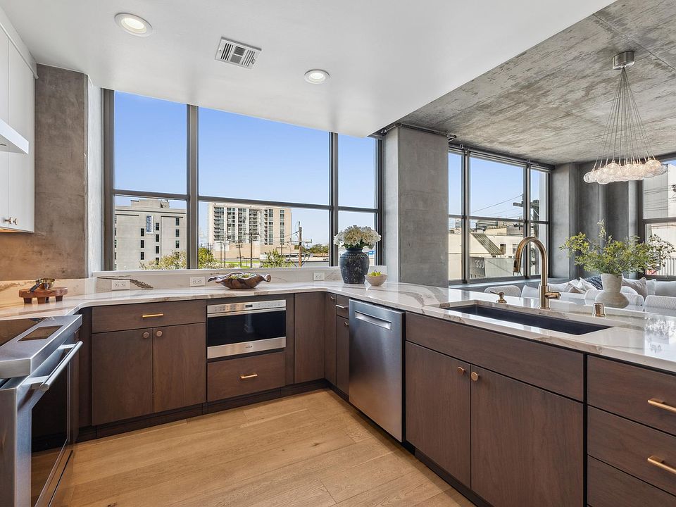 Gorgeous light and views in this fully remodeled Bond classic. The sophisticated style blends timeless elegance and sleek, modern design. An open floor plan is warm and inviting with its generously sized kitchen and living areas. Immerse yourself in the city skyline and sunset views. No detail was spared, presenting a custom-designed kitchen featuring a Sub-Zero integrated refrigerator, Sub-Zero wine refrigerator, a Wolf powerful induction stove, Bosch dishwasher, and gorgeous quartz counters with full backsplash. Every detail is intentional and absolutely perfect. Corner windows in the living space with Du Chateau hardwood floors throughout. A custom entertainment center will with generous bookcases and a place to house all your media. It all comes with a never-ending view of the city lights. Escape to a roomy ensuite with a spa-like bathroom featuring Italian porcelain tile, a modern free-standing soaking tub, dual sinks, separate shower stall, and a large walk-in closet with built-in organizers. The split design gives visitors privacy with guest bed and bath. There is a large laundry and utility closet as well as a generous coat closet. Stylish and swanky, The Bond's grand lobby has concierge services and more! Open House Sunday 2-4PM! Tenant responsible for electricity, gas, and internet.