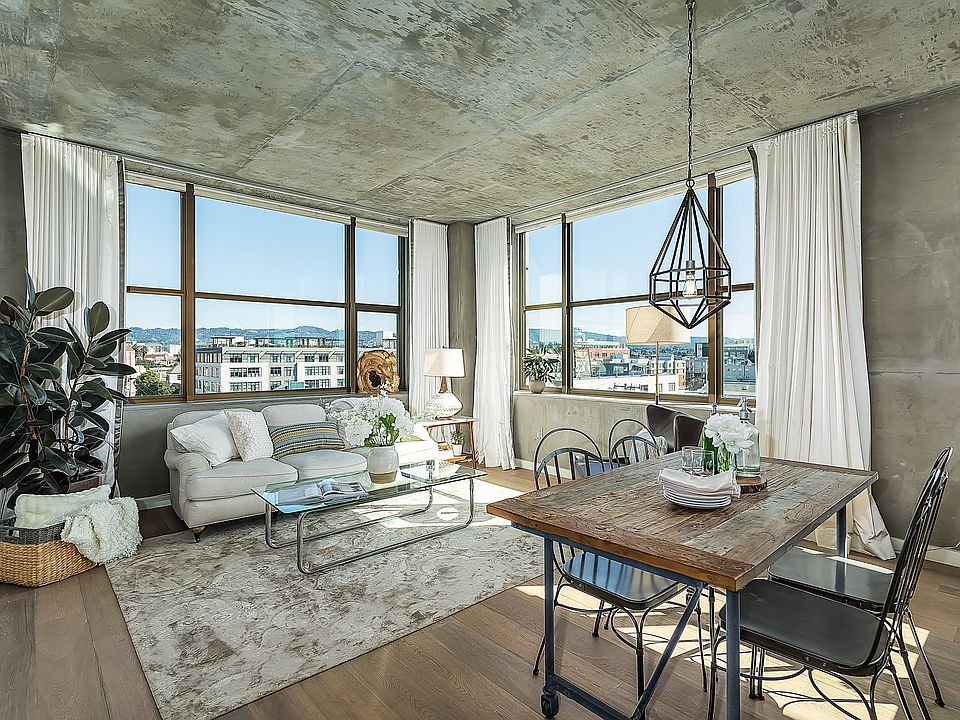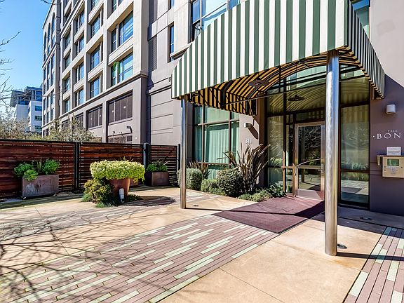 There's no place like home! And there's no place like The Bond, an exquisitely-designed luxury condominium in Oakland's Jack London Square. This tranquil corner unit faces the Oakland city skyline and features enormous windows in every room that brighten and enhance the open floor plan. A large kitchen is appointed with Bertozzoni and Bosch appliances, black granite countertops and dark green custom cabinets, their sleek design perfectly complimenting the gorgeous Du Chateau(tm) hardwood floors that run throughout. The condo boasts tons of in-unit storage, two parking spaces and Nest controlled central A/C. Throw a quick load of laundry into the in-unit washer/dryer before taking your pup down to the building's dog run. Lounge with a book and a glass of wine while listening to the birds chirping in the garden courtyard. Convenient access to multiple commuting options and hotspots like Belcampo, Yoshi's, & Original Pattern Brewing. Don't hesitate - this special unit won't last long!