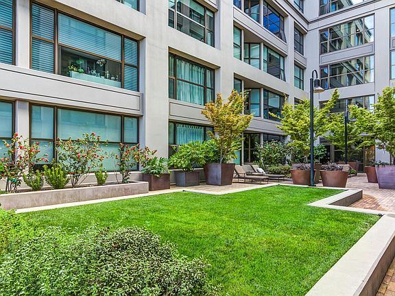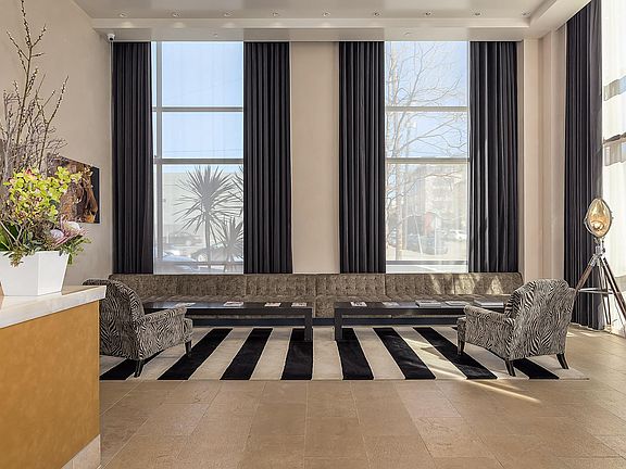 Open House this Saturday and Sunday 1pm to 3pm! Bring your pet! Private 4000 dog park included. This is a high-quality condo in a very cool location with very easy access to BART, Ferry, Amtrak, and the free B shuttle. Sunny, stylish, and sophisticated, this fabulous one bed, two bath plus a den offers Marina views and gorgeous sunset skies. Exposed cast-in-place concrete walls and ceiling, smooth elegant walls, abundant windows. Perfect entertainment setting with Du Chateau hardwood floors, open living, dining, and kitchen The kitchen is functional and roomy, featuring Bertazzoni stainless gas range, generous black granite countertops, marble backsplash tiles, and a large single stainless kitchen sink. The master bedroom is a sanctuary. Dual sinks, Italian porcelain tile, and a large walk-in closet with custom built-ins. A/C is included. 1 car parking for $150. Additional parking available at the garage next door. Furnishings are optional. Unfurnished or Furnished
