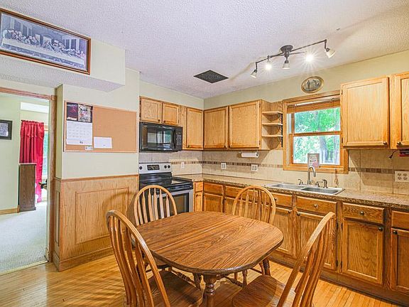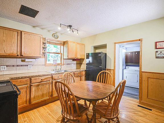 Affordable! This home features newer windows, siding, doors & furnace. 3 bedrooms on one level, 1 bath, kitchen with tile backsplash, separate dining room & tile bath. Finished 24x30 detached heated & insulated garage with 10' sidewalls, corner lot, move-in ready. Priced to sell!!