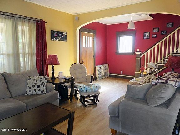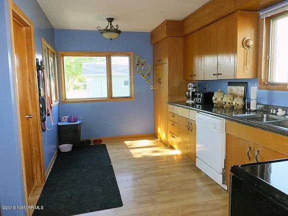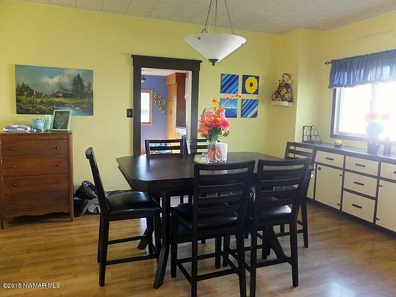 Small town living only 17 miles from TRFalls. Spacious 4 bedroom 2 bath home. Newer laminate flooring on the main floor except the kitchen and bath. Inviting formal dining room with built in cabinets and shelving plus an eating area in the kitchen. Full basement is unfinished, walls have mold resistant paneling. Shower in the basement. Large front porch. Patio. Shingles new in 2010.
