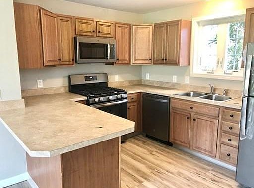 Nicely Renovated Townhouse right off Rte 195 and minutes to Downtown Fall River. Upgraded cabinets with updated applianced kitchen w/breakfast bar area. Light and bright with newer windows. Open floor plan with combination LR/DR. Half bath on first floor. Three bedrooms and full bath upstairs with plenty of natural light. High ceiling in full basement which could be finished for more living space Great location with Griffin park right next to the house so you have your own playground and baseketball courts at your disposal! Newer carpeting and recently painted walls.