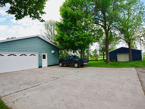 WAIT NO MORE! ENJOY ONE-LEVEL LIVING IN THIS STUNNING CORNER RAMBLER ON THREE CITY LOTS! This solid home has 3 bedrooms, 2 baths, open living dining area with a rock fireplace, laundry off of the eat-in kitchen, and a solar/sunroom that opens to the patio and luscious backyard. Enjoy watching the birds on this large back patio with landscaped areas of perennials, or through your long wall of windows along the south side of home. If the double car finished attached garage isn't enough, you will appreciate the detached steel 25 x 32 sq ft shop/garage which includes a finished back work room!