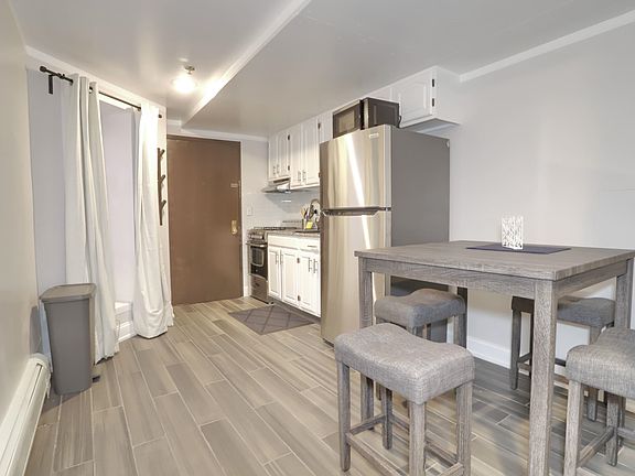 This stunning 1-bed 1-bath apartment is ideally situated just off Palisade Ave in Union City's desirable West Hoboken neighborhood. Moments away from the bus stop, you can reach Midtown Manhattan in just 15 minutes! Prefer the Light Rail? It's a quick trip to the 9th St Light Rail Station. The unit boasts an open floor plan, a sleek modern kitchen with granite countertops, a subway tile backsplash, and stainless steel appliances. It comes fully furnished with brand new pieces. Heat, hot water, and new A/C units are included in the rent. The location is unbeatable!