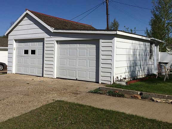 Recently lowered price and included furnishings. Comfortable smaller 3 bedroom home with steel siding that never needs painting. Detached double car garage with work bench area. Large south facing corner lot located one block from school. The house is well insulated and has large shade trees that keep the house cool in the summer.