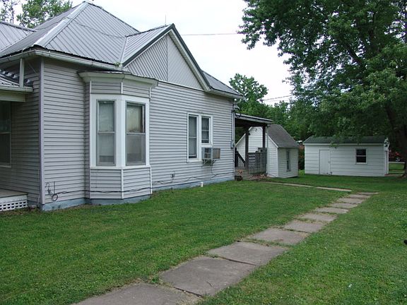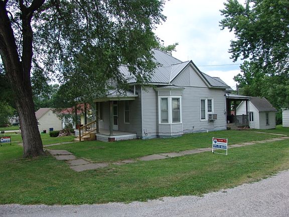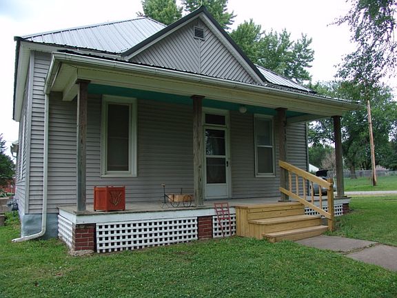 GREAT price! Roomy 2 bed 1 bath with one car detached garage. Living room, dining room, master bed with double closets, second bed with additional closet space, antique front door with beveled glass, kitchen with retro stove in good working condition, and separate laundry room. Bath has pedestal tub and remodeled sink and cabinetry. Tilt-in windows in dining room and bedroom. Outside has two separate porches, a small gardening shed and a one car detached garage with room for a tool bench along one side. Brokered by RE/MAX Town and Country, 801 S. Main Street, Gallatin, MO 64640. Listing Agent Allison Spidle. Call today at 660-663-5757!