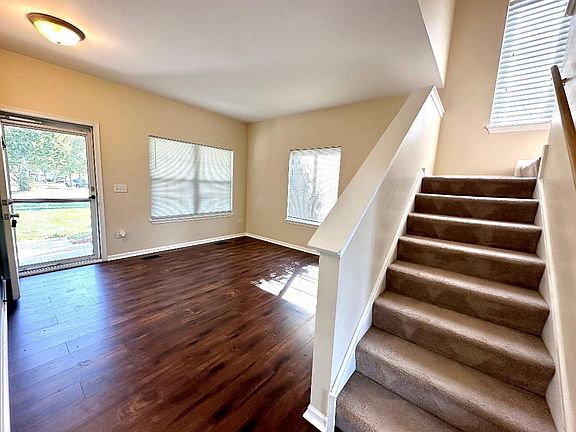 You will fall in love this one! Spacious 2 story, 3 Bedroom & 1 1/2 Bath Duplex backing to field. If you want privacy, you've found it. New low maintenance rich wood toned plank vinyl floors throughout 1st level. Large living room for entertaining. Flex room adjoining kitchen can be a dining room, family room or home office. Great eat in kitchen with lots of white cabinetry, granite counter tops, pantry closet & black/ stainless steel appliances. Huge Master bedroom has a walk in closet and bath access. Generous sized secondary bedrooms plus conveniently located 2nd floor laundry. 1 car garage & fenced yard with deck for your outdoor enjoyment. Popular Pool & Clubhouse community with parks and pond. Low monthly HOA fees. Walk to Elementary School. New roof 2019. This one is ready to go!