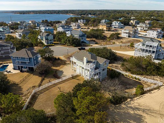 Sitting high up in sought after First Flight Ridge,  this home has it all... from the ocean to sound views to a fully fenced yard on one of the largest lots in the community.  The beautiful reverse floor plan begins on the bright, airy and open top level, decorated in a soft palette that lets the views be the stars of the show.  Soapstone countertops sweetly called “bubbles” grace the U shaped kitchen and the breakfast bar area features built in footrests.  Ease over to the living area complete with a wood burning fireplace to take the chill off those winter nights.  The primary bedroom with ensuite on this floor has a soaker tub, stand up shower and double sinks.  The cedar lined walk in closet is an added bonus.  Direct access to the ocean facing upper deck is available from both the living room and primary bedroom.  A wonderful sound facing balcony is accessed from the dining area and is the best place for a sunset toast.  The mid level boasts wide hallways that lead to 3 bedrooms.  1 bedroom with an ensuite bath and the other two sharing a connected bathroom. Laundry area with additional cabinets is located off the mid level hallway.  Ready for some fun?  The ground level bous room, wet bar and full bath with direct access to the back yard is the place to be.  When its time to head outside, you will find 3 levels of rear decks, that extend from the roof to the ground.  The composite boards keep the decking low maintenance. Ocean to sound views are good from your top floor and even better from your roof top!  Sunrises and sunsets are a daily treat.  Did someone say storage?  This home has wonderful large closets on every level as well as two outside storage rooms.  Want the extras – well irrigation means no large water bills in the summer, existing elevator shaft means extra closet space on every level now and an easy conversion if and when an elevator is desired.  The large fenced yard should make a pool possible. First Flight Ridge is a private, gated community centrally located in the heart of Kitty Hawk within a quick walk or bike ride to numerous shops, restaurants and the beautiful Kitty Hawk beaches. The community backs to Kitty Hawk Bay and the Kitty Hawk multipurpose path perfect for walking, biking, running, you name it! The soundfront community pier is a perfect spot where you will often find neighbors gathering to watch the sunset. The pier also has a launch platform ideal for dropping in kayaks and paddle boards.  HVAC 2021