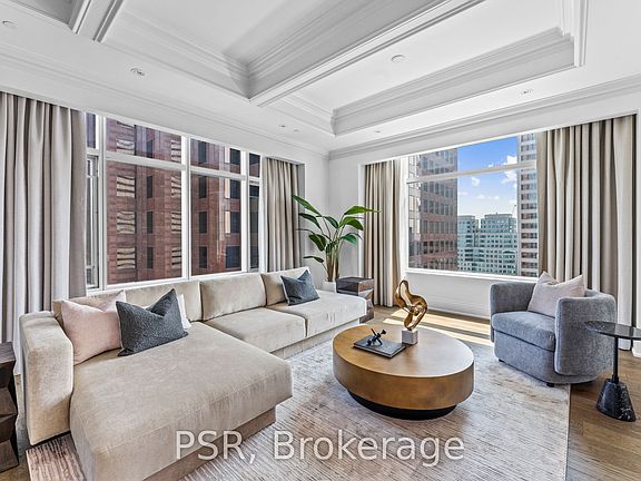 Welcome To The St. Regis Residences - Luxury Living At Its Finest! Impeccably Finished & Beautifully Appointed Corner Suite Boasts Highly Sought After South Exposure With Sweeping Lake & City Views. Suite 4804 Is Situated On The Highest Floor This Plan Is Offered - Spanning Just Shy Of 1,900 SF With 2 Bedrooms & 2 Full Bathrooms. Grand, Open Concept Living & Dining Rooms Are An Entertainers Dream - Boasting 10.5 Ft Coffered Ceilings, Wainscotting, & Designer Finishes Throughout. Primary Bedroom Retreat Offers Generously Sized Double Closets & Spa-Like 6pc. Ensuite With Large Free Standing Soaker Bathtub. All Light Fixtures & Window Coverings [Drapery/Sheers] Included. Chefs Kitchen Offers B/I Miele Appliances, Downsview Cabinetry, & Eat In Breakfast Area. 1 Locker Included & Valet/Parking Available. Enjoy Daily Access To Five Star Hotel Amenities: 24Hr. Concierge, Spa, Indoor Salt Water Pool, Sauna, State Of The Art Fitness Centre, Valet & Visitor Parking, As Well As The Private Residential Sky Lobby & Terrace On 32nd Floor.