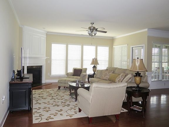 Stunning brick front split bedroom ranch (Cumberland Hall) in highly desirable Carolina Preserve. Hardwoods throughout most of 1st floor. Open floor plan. Formal dining room includes trey ceiling. Spacious living room offers gas log fp. Bright & open kitchen w/ granite tops, s/s appliances, tile backsplash. Large master suite has trey ceiling, garden tub w/ separate shower & WIC w/ built-ins. Amazing tiled 3 season room. 3 bedrms + office. Oversized 2 car garage with built-in workbench. Walk to parks.