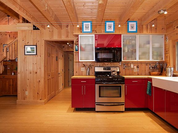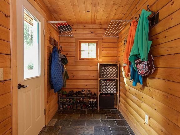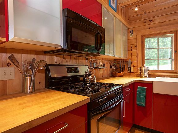 This is not your typical log cabin. It is the beautiful union of old New England and modern design. Constructed in 2007 and boasting a contemporary, architecturally designed interior, this three bedroom, two bathroom home is perfectly situated on its 6.5 acre lot to provide the best of everything: sunlight, views, yard space, and privacy. The exterior logs have been recently stained and the standing seam roof should require little year-to-year maintenance, making this house ready to move right in. Stepping through the mudroom and into the sleek kitchen, complete with stainless appliances and eye-catching cabinetry, you will be immediately impressed by the amount of open space and the logical layout. Spend your winters curled up by the gas stove in the living room and your summers enjoying the covered porch off the dining area. Radiant heat flows through the bamboo floors that run throughout the main level, which boasts a full bathroom and two bedrooms. Upstairs you will find a spacious loft and the tasteful master suite, complete with an additional gas stove, a standing shower, and a clawfoot soaking tub. The walkout basement offers fantastic potential. The concrete floor also has efficient radiant heat, and the high ceilings allow for ample storage or workshop space. Conveniently located close to schools, ski areas, Waterbury and the interstate, don't miss this one-of-a-kind home!