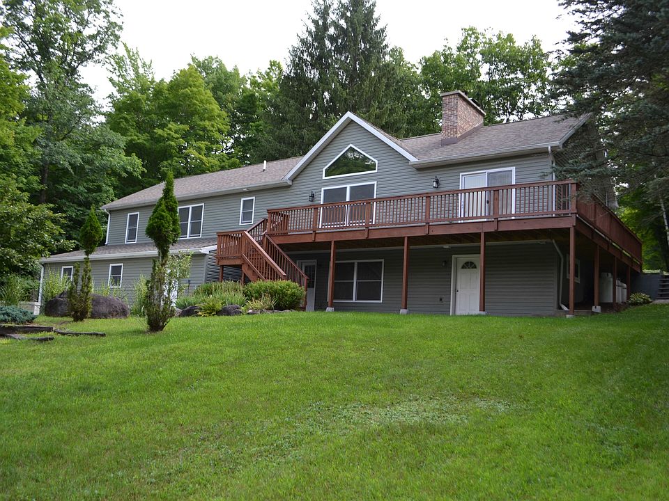 Located on bloody Pond Road directly across from Robin Lane. Gorgeous hillside ranch on semi secluded location with views of prospect mountain. Located in Lake George school district. Home boast 4 bedrooms & 3 full baths, an open kitchen to dining area and living room with Cathedral ceiling, gas fireplace, large deck overlooking .63 acre yard. Finished walk out basement with woodstove, full bathroom and laundry room. Master suite with full bathroom and walk in closet. Hardwoods, carpet, ceramic tile, 2.5 car garage. Possible one dog allowed with additional security. (dog must be interviewed, have vet record/shots, license/registered with municipality). No cats. Rental application to be completed. Tenant responsible for garbage, utilities, lawn and snow maintenance. Tenant responsible for garbage, utilities, lawn and snow maintenance. Possible one dog allowed with additional security. (dog must be interviewed, have vet record/shots, license/registered with municipality). No cats. Rental application to be completed.