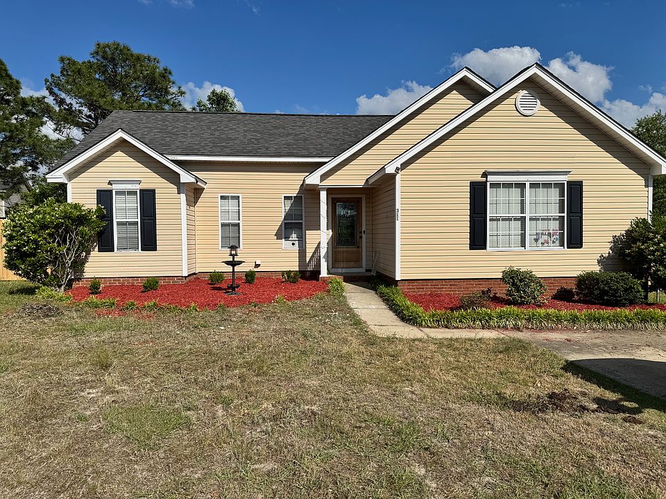 New LVP floors throughout in 2025. Fenced yard on quiet cut-de-sac. Master bedroom easily accommodates a king bed with 2 separate walk-in closets. Master bath includes tiled shower and vanity. Bedroom 2 & 3 also have walk-in closets. Dedicated laundry room. Spacious eat-in kitchen. Raised deck on back approximately 10x15 feet. I am unable to accept section 8 vouchers. Renter responsible for all utilities.